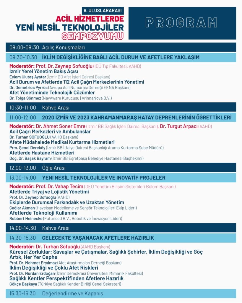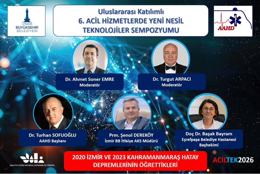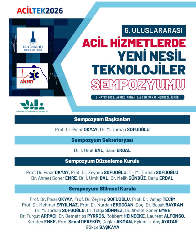 İzmir Büyükşehir Belediyesi ve Acil Afet Ambulans Hekimleri Derneği (AAHD) tarafından İzmir Ahmet Adnan Saygun Sanat Merkezi’nde 6 Mayıs 2026 tarihinde konusunda yetkin ulusal ve uluslararası konuşmacılar ile gerçekleştirilecek sempozyuma konu ile ilgili herkesi davet ediyoruz. Sempozyuma katılım ücretsizdir.